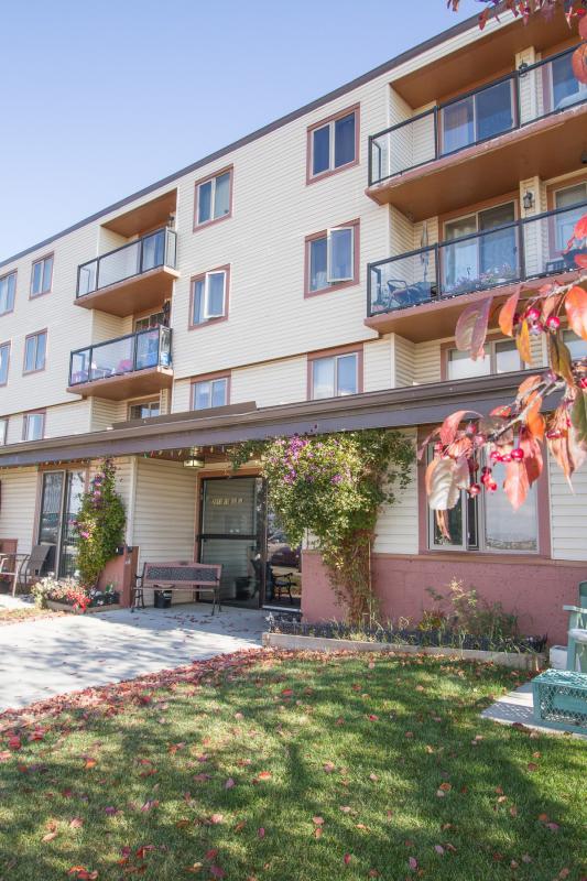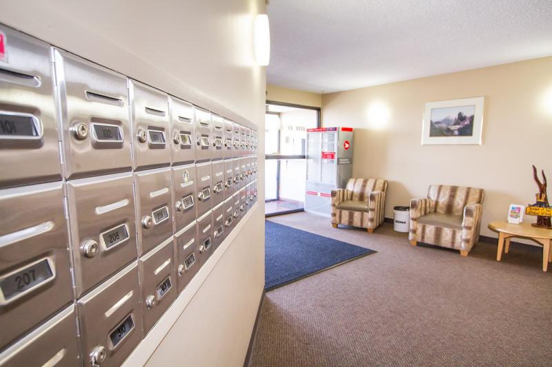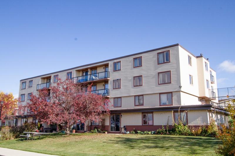 Becker Manor contains 36 suites in a concrete structure with a newly renovated exterior, including new windows and balconies. It is located on a quiet cul-de–sac in Radisson Heights. It overlooks downtown and has a superb view of the mountains from the west side. The suites offer a variety of layouts, some with walkout patios, and others with balconies. There are as well some non balcony units. There are 4 bachelor suites and 32 one bedroom suites.